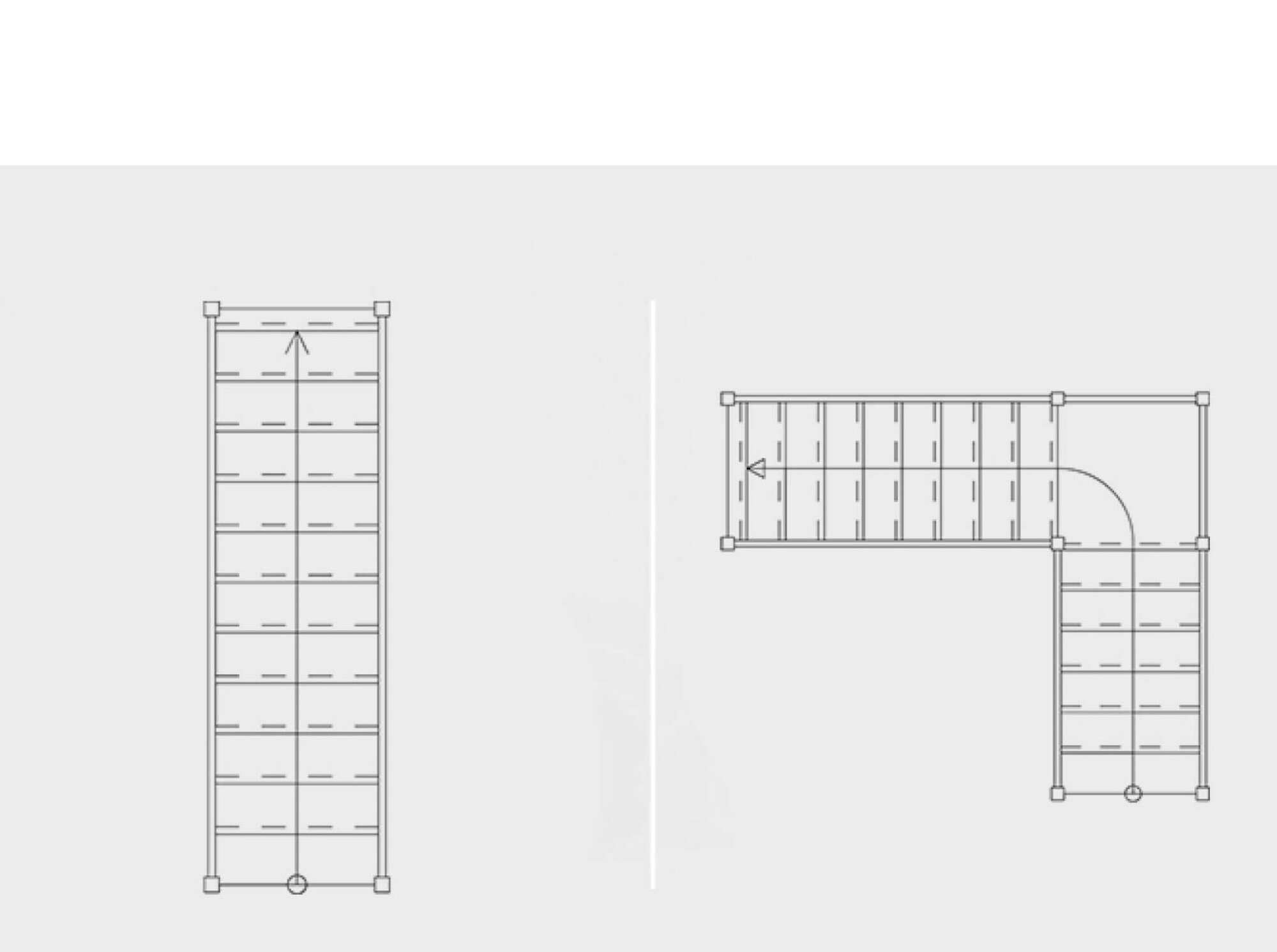 Im Allgemeinen nehmen Formen mit geraden Abschnitten den meisten Platz ein, insbesondere bei Varianten mit einem Podest. Das Podest ist ein Element im Treppenhaus, bei dem nichts in die Höhe steigt, man könnte also sagen, dass es Platz vergeudet, aber es hat viele positive Eigenschaften - ältere Menschen können sich auf ihm bequem beim Gehen ausruhen (deshalb wird es im Volksmund als Ruheplatz bezeichnet), zwei Personen können sich auf ihm leicht überholen, oder vom Podest aus kann man am sichersten vom Treppenhaus ins Zwischengeschoss abbiegen. Podeste sind auch oft eine Lösung, um Kollisionen mit Türen oder Fenstern in den Wänden um die Treppe herum zu vermeiden, ein typisches Beispiel ist eine gerade Treppe mit einem Podest am Ausgang. Die geraden Abschnitte zwischen den Podesten bieten die Sicherheit einer gleichmäßigen und regelmäßigen Stufe und sind sicherer als die schrägen Podeste von unterbrochenen Treppen. Das große Podest und die regelmäßige Form der Treppe machen sie zu einer der idealsten und sichersten Treppen überhaupt.